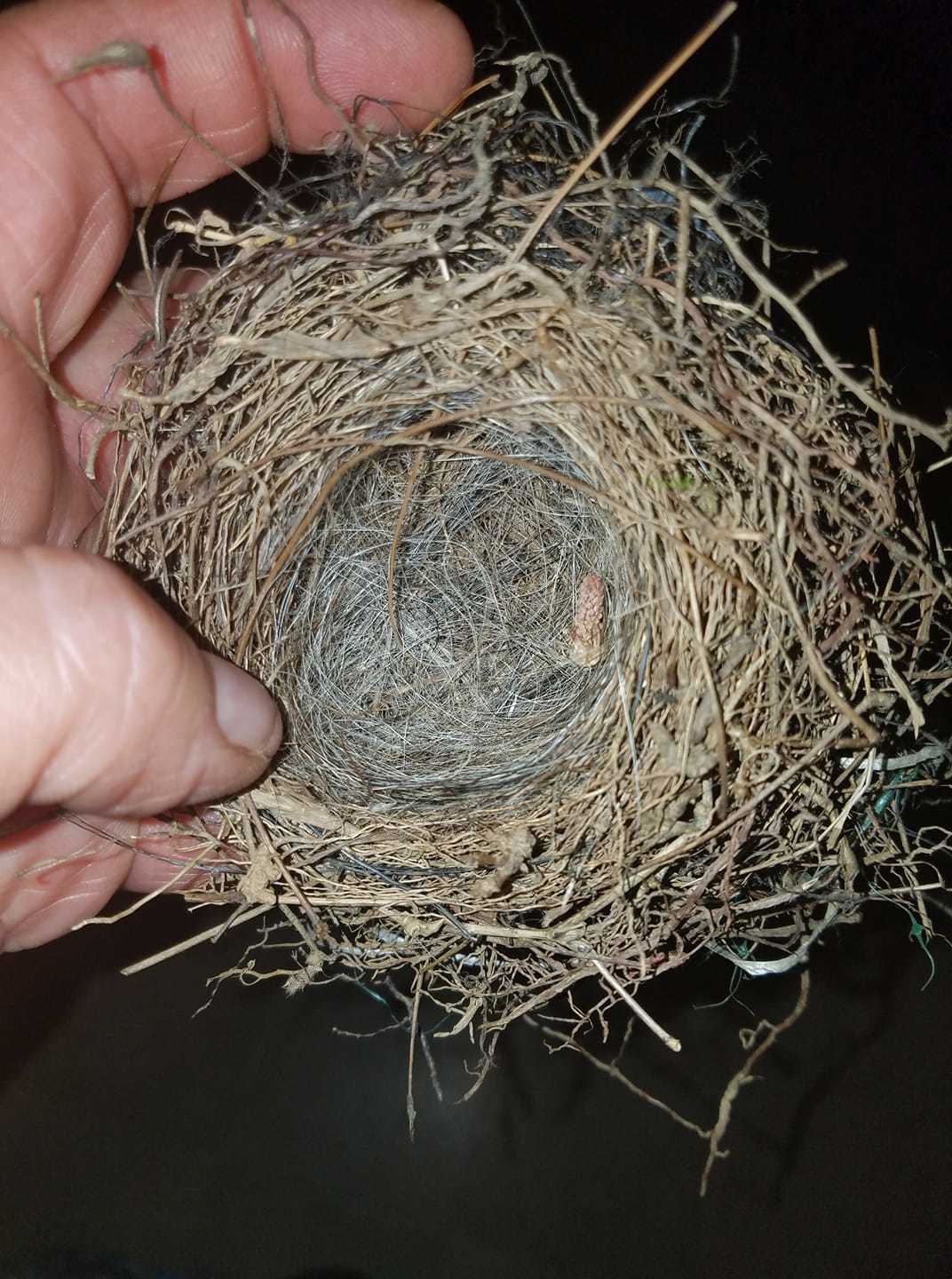 “Summertime and the livin’ is easy…” One of my favorite songs says it all. It’s hot pretty much everywhere, especially in Texas. Too hot to do much more than take it easy. My hammock beckons on sultry summer afternoons. Lounging there, I watch the wild birds flitting about, enjoying a rainbow of sparkling water droplets spraying over their bird bath. My worries melt away as I remember Matthew 6:26: “Look at the birds of the air: they neither sow nor reap nor gather into barns, and yet your heavenly Father feeds them. Are you not of more value than they?” There is so much joy in sharing what I have with these little feathered folk who flock to my bird feeders every morning and sing down the sun every evening. Sometimes, as in this photo by taken by Tina Andrews, I get a special gift that fills my heart with delight. Like me, Tina has long hair that sometimes gets away from her. She found this bird nest on her lawn and realized the center was her own soft, shining hair made into baby bird bedding. Now, everytime we clean loose hairs from our combs and brushes and toss them outside, we make living easier for our beautiful wild birds.